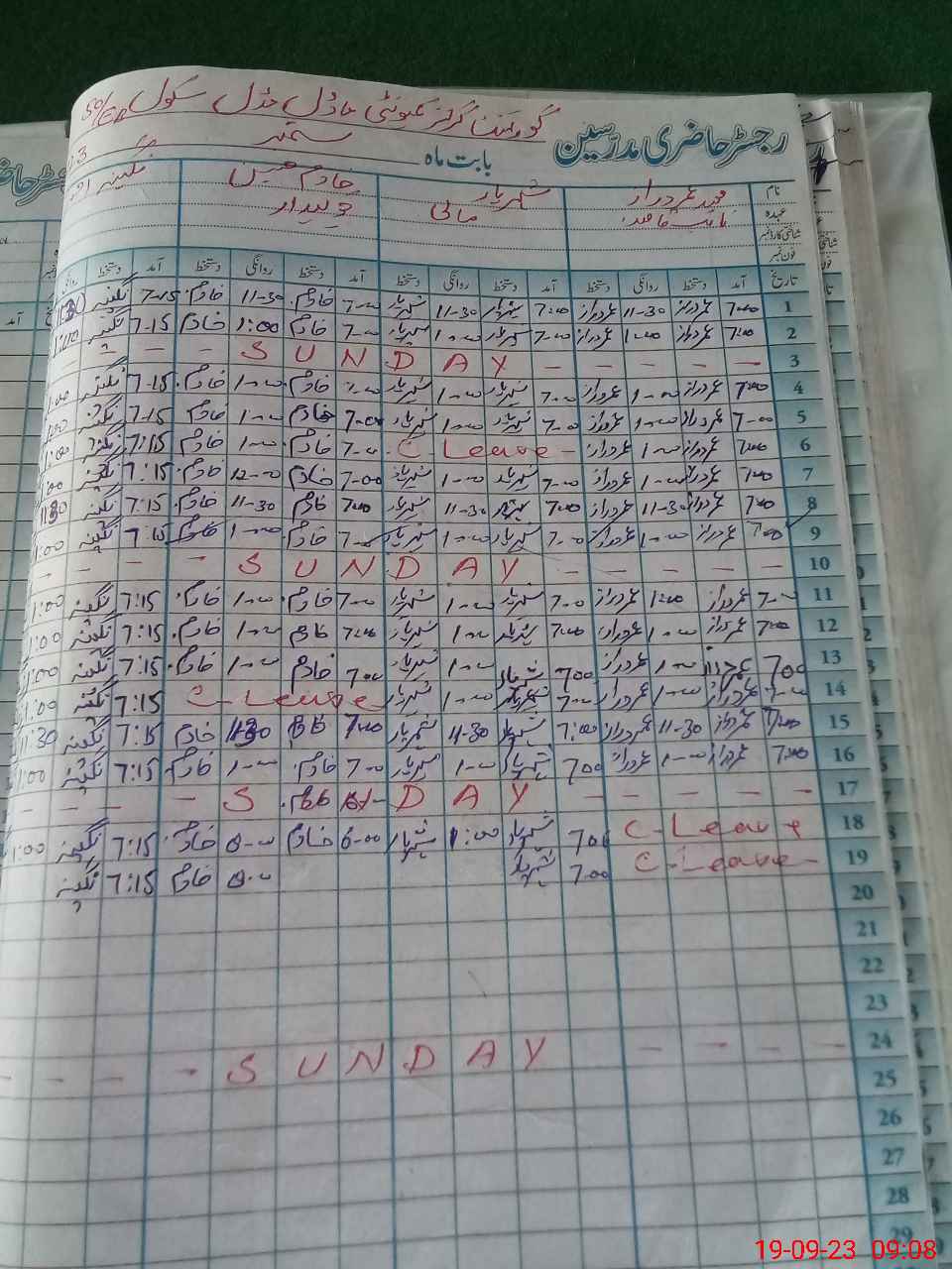 | CNIC | Full Name | Designation | R/C | Absence During Last Calender Month |