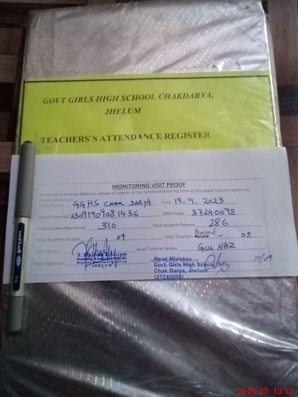 | EMIS Code: 37240098 | Name of School: GGHS CHAK DARYA | |||