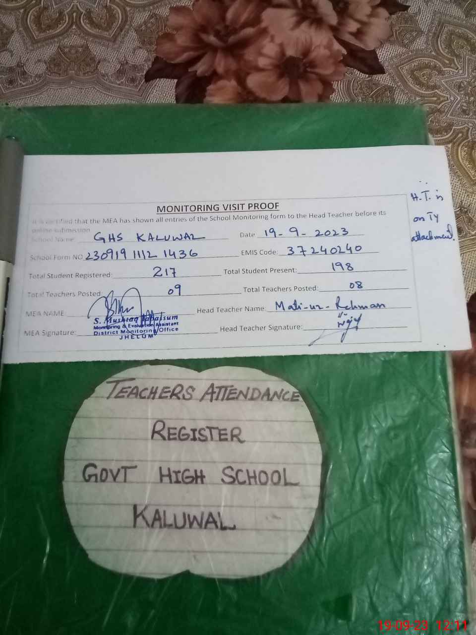 | EMIS Code: 37240240 | Name of School: GHS KALUWAL | |||