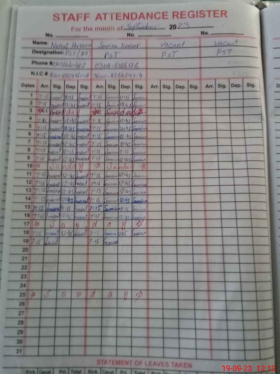 | Name: NU**** PA**** Designation: (School Headmaster's/Headmistress's) PST Phone/Cell Number: 03**** |