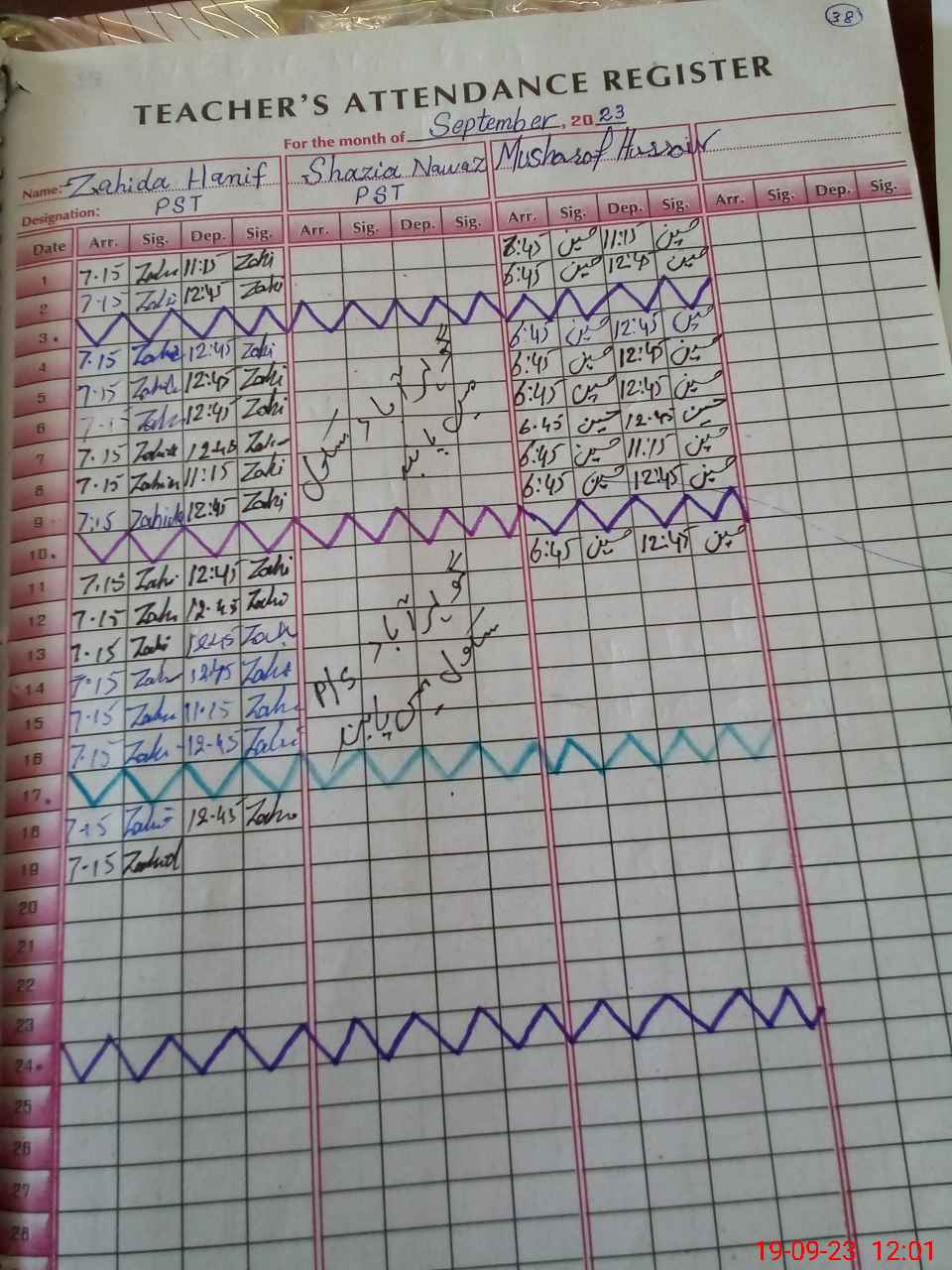 | Name: Za**** Ha**** Designation: (School Headmaster's/Headmistress's) PST Phone/Cell Number: 03**** |