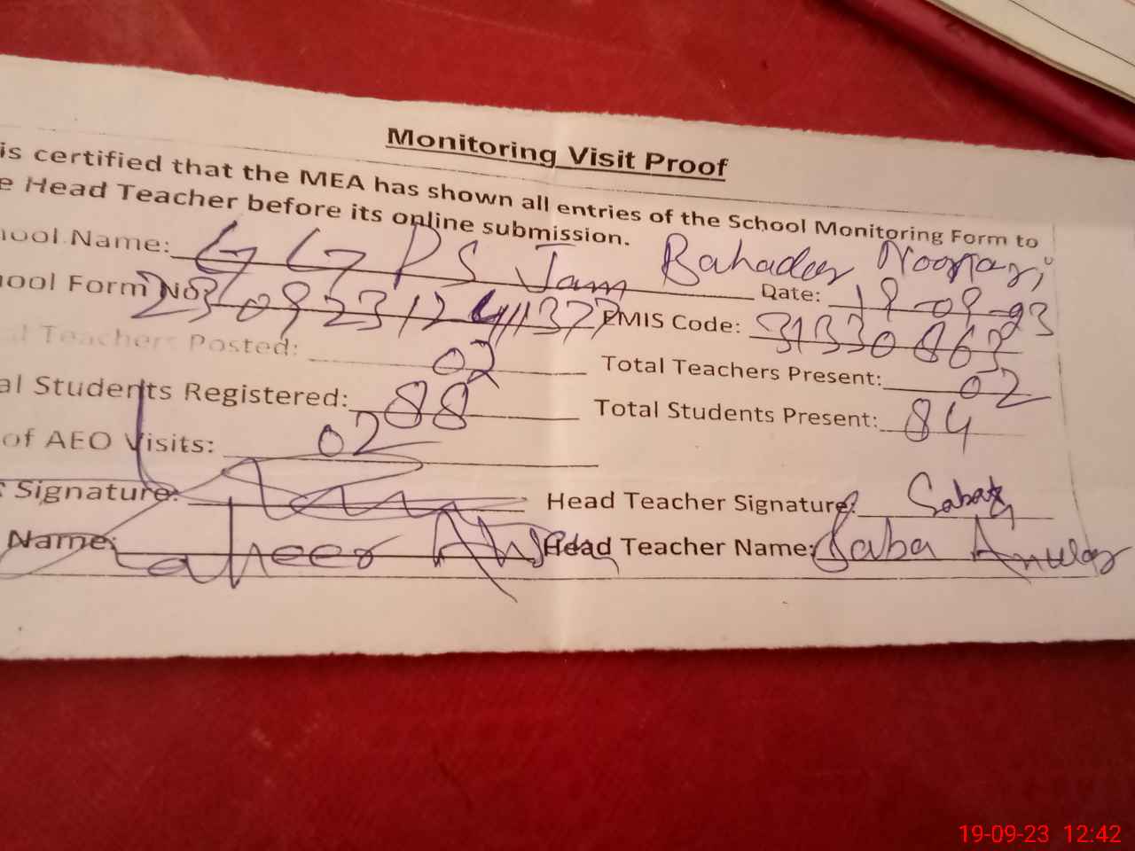 | Certified that this School was Inspected by the Undersigned MEA/DMO Today and the Information Stated Above is as Per Record. | |||||