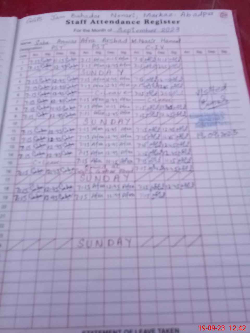 | Name: Sa**** An**** Designation: (School Headmaster's/Headmistress's) PST/PTC/JV Phone/Cell Number: 03**** |