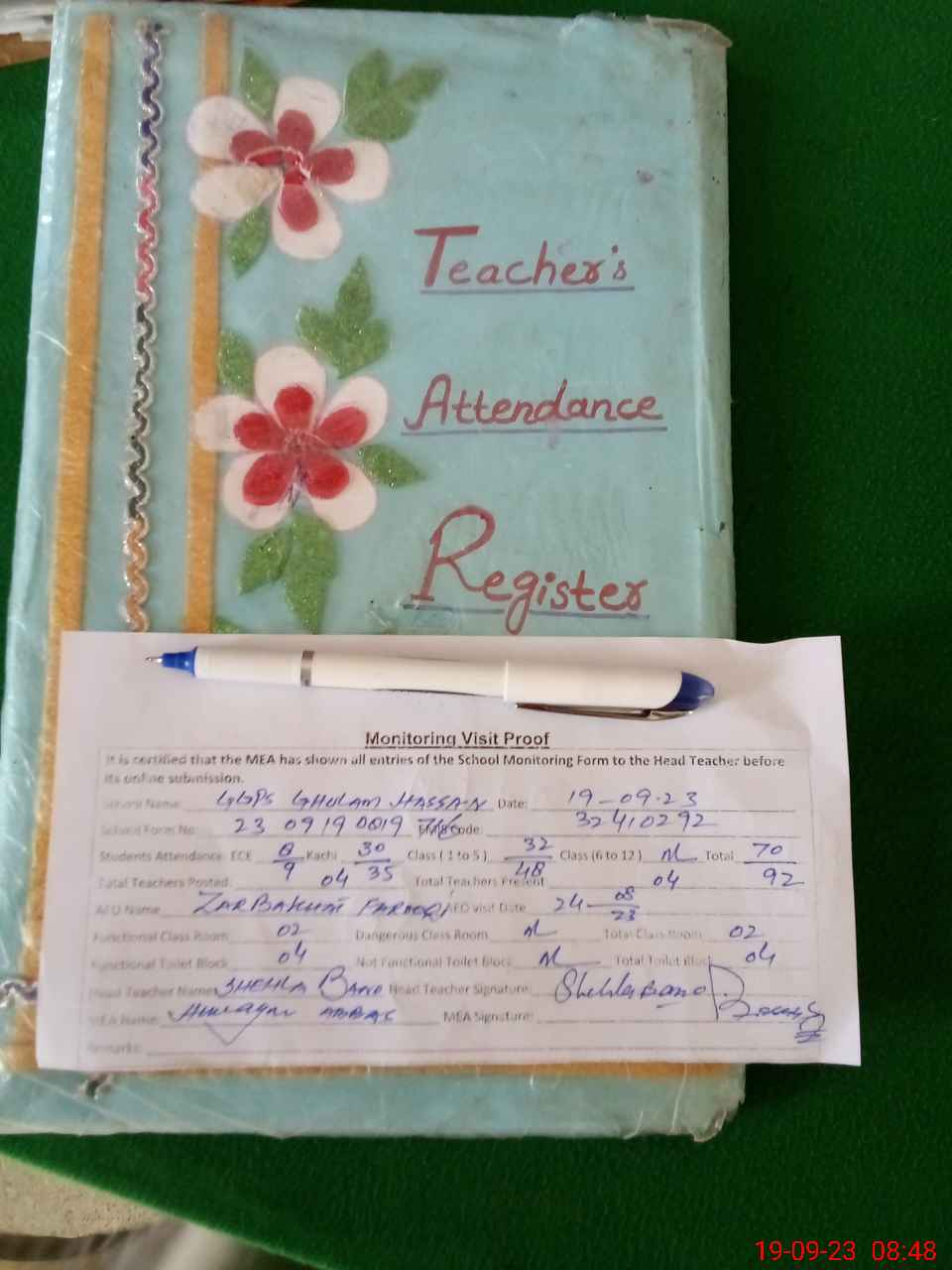 | Attendance Register | Head Teacher | MEA with School | Visit Proof |