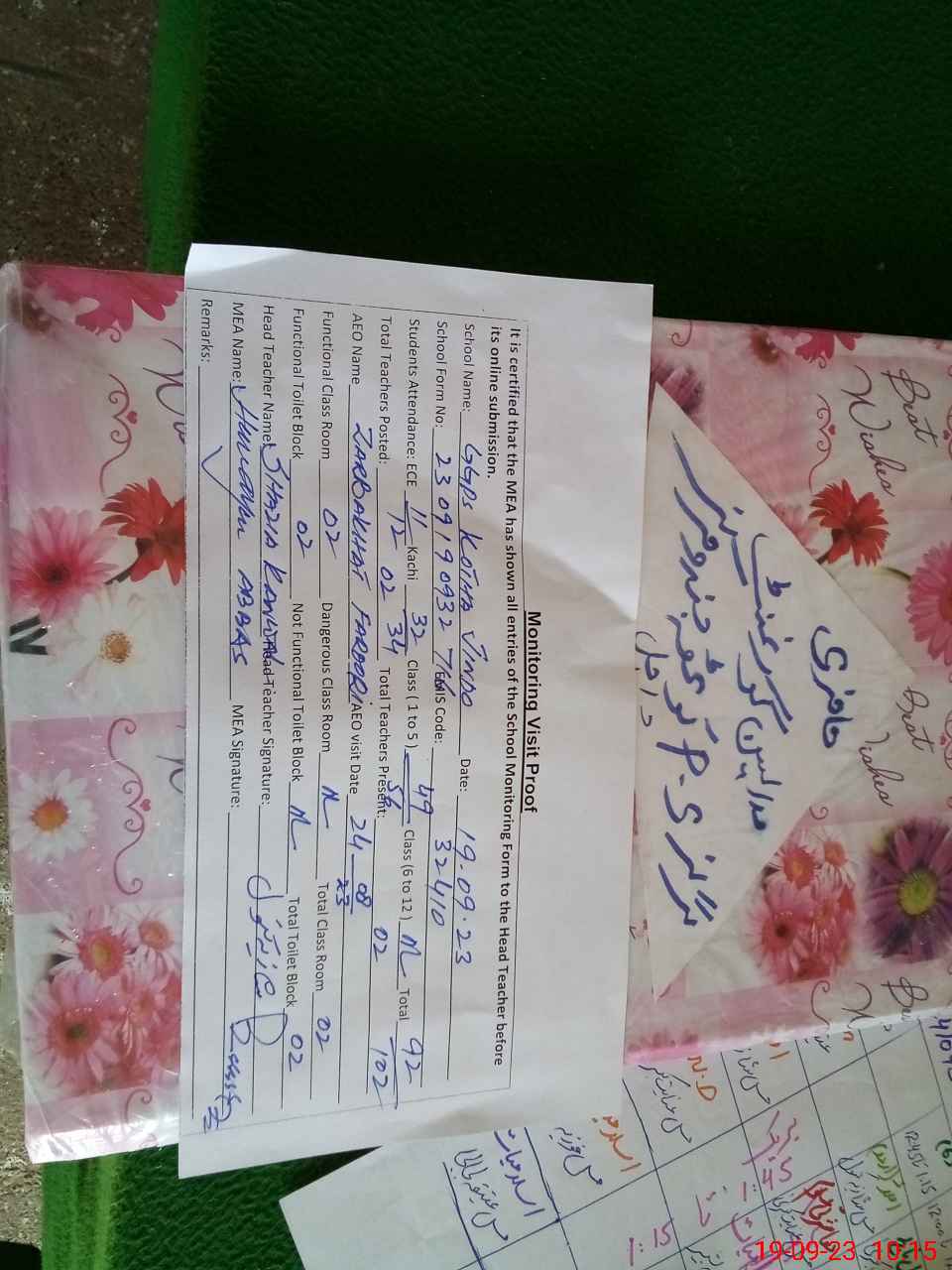 | Certified that this School was Inspected by the Undersigned MEA/DMO Today and the Information Stated Above is as Per Record. | |||||