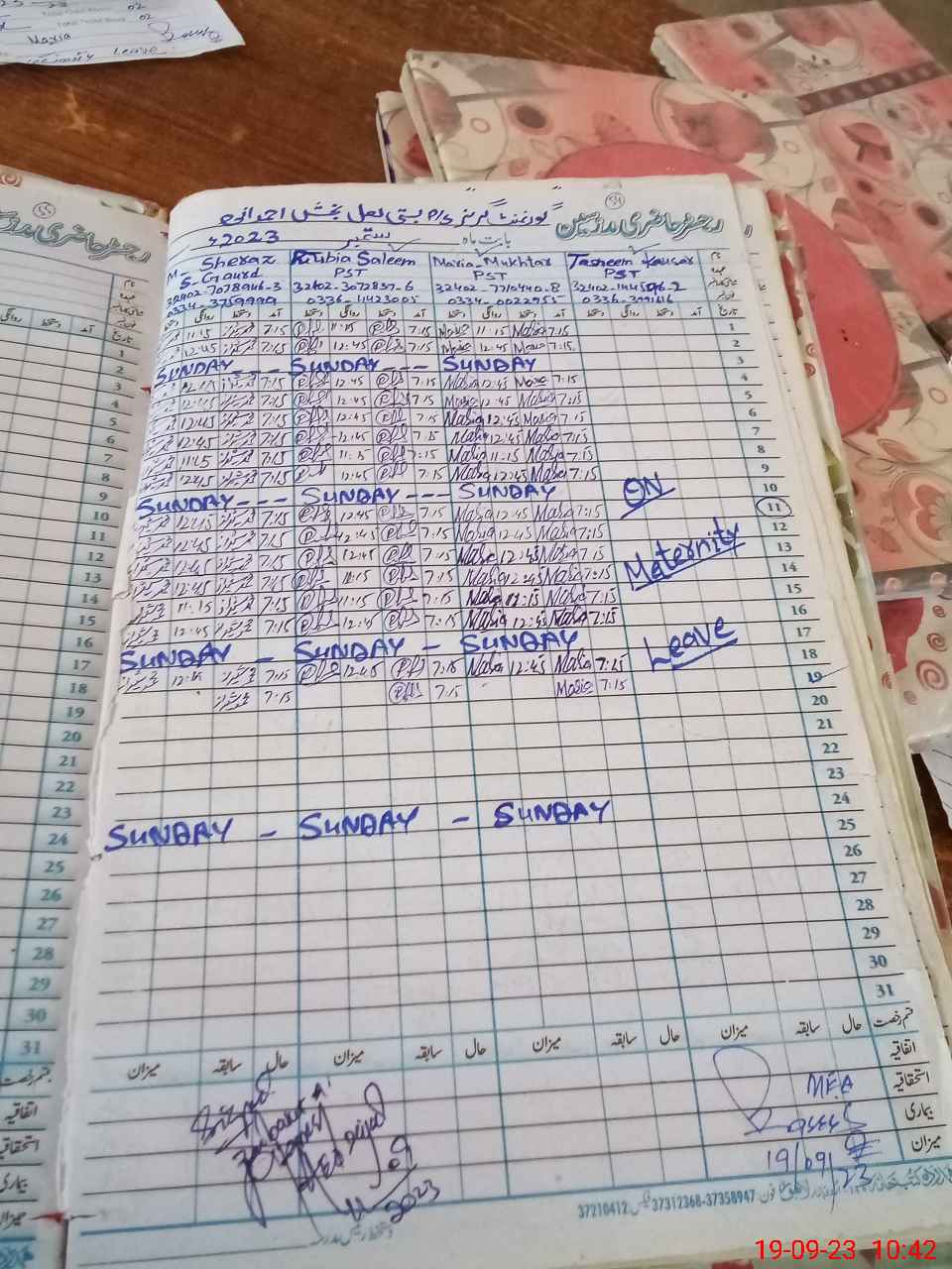 | Leave | Duty | Absent | Maternity | Medical | Ex- Pak |