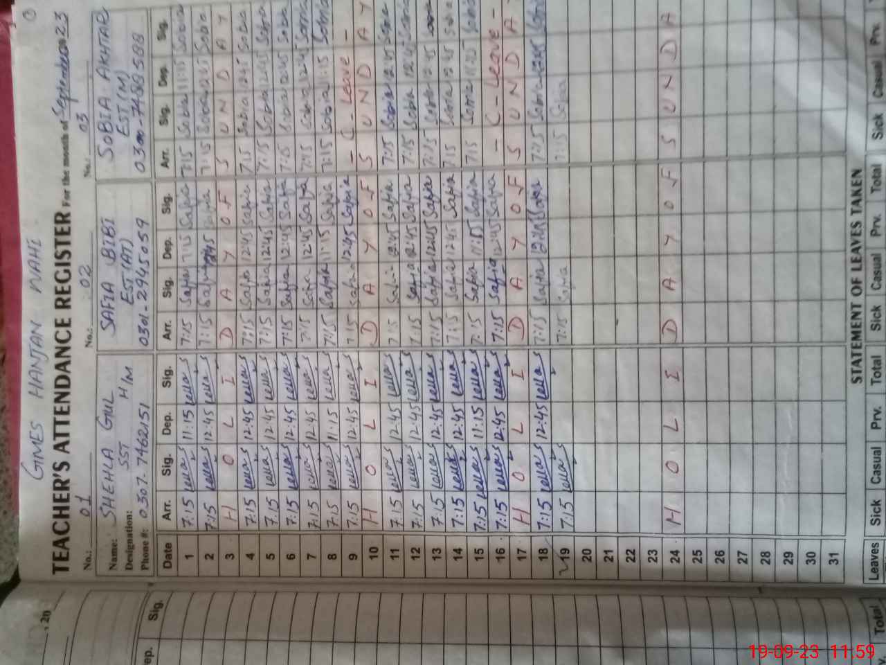 | Name: SH**** GU**** Designation: (School Headmaster's/Headmistress's) S.S.T.(G) Phone/Cell Number: 03**** |