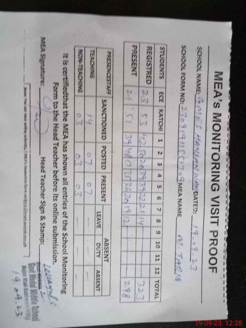| Certified that this School was Inspected by the Undersigned MEA/DMO Today and the Information Stated Above is as Per Record. | |||||