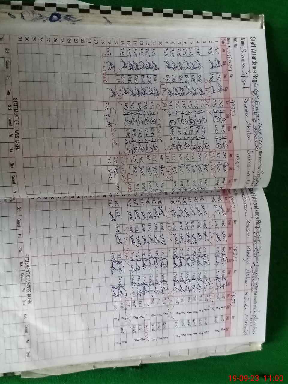 | Leave | Duty | Absent | Maternity | Medical | Ex- Pak |