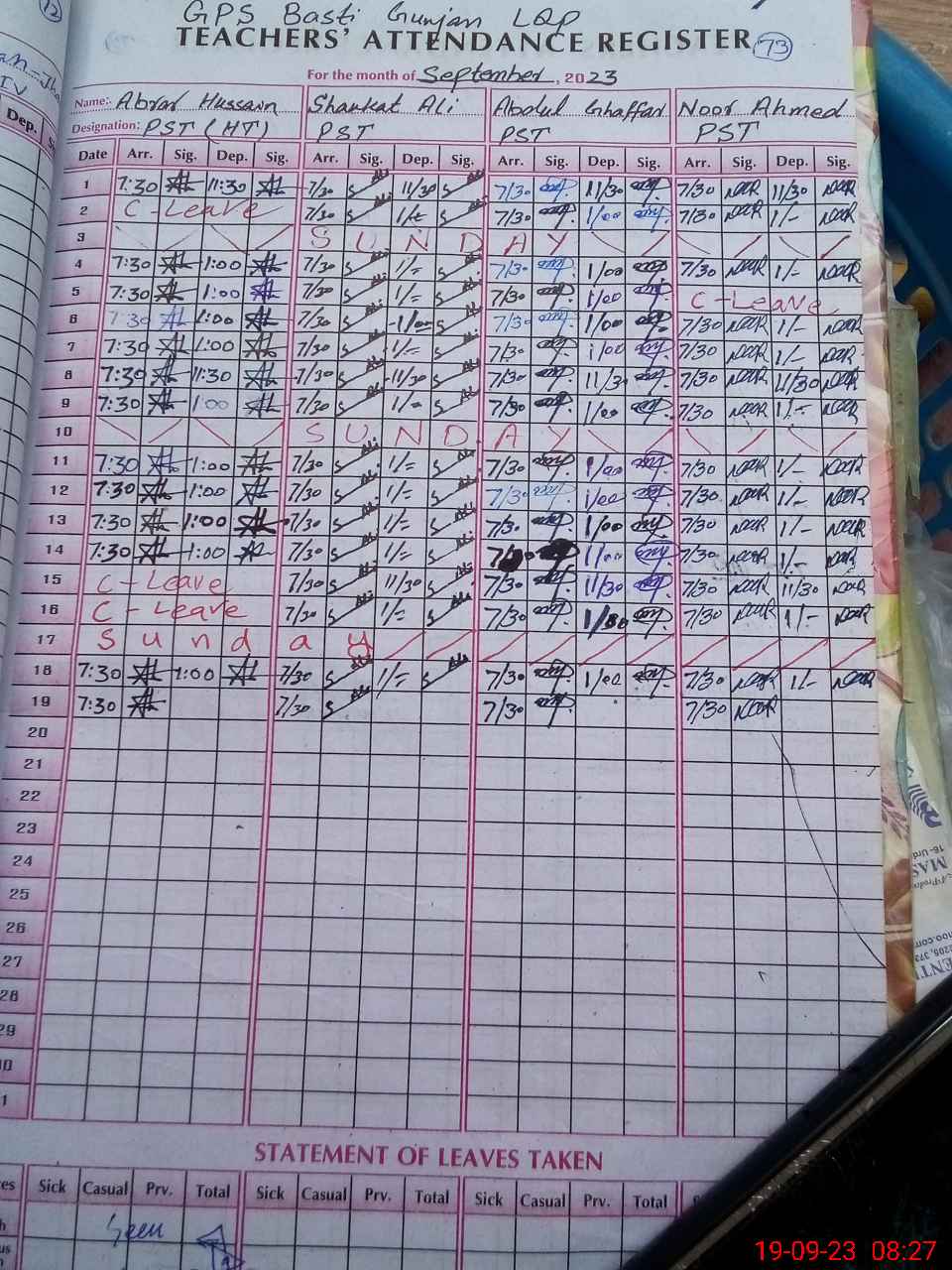 | Total no. of Classrooms: 4 No. of Classrooms Used for Teaching: 4 No. of Classrooms Storing Old Furniture, FTBs, etc: 0Comments if Any: CV1 SHAH JAHAN IS ABSENT 21 AGUST 2023 TO 19 SEPTEMBER 2023 |