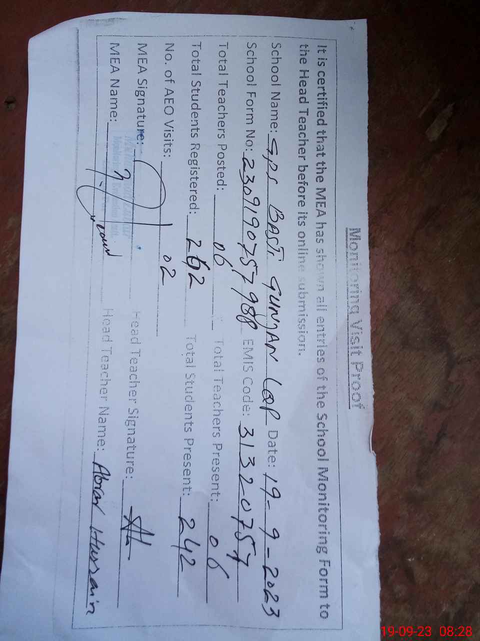 | Certified that this School was Inspected by the Undersigned MEA/DMO Today and the Information Stated Above is as Per Record. | |||||