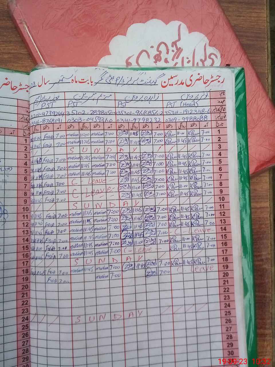 | CNIC | Full Name | Designation | R/C | Absence During Last Calender Month |