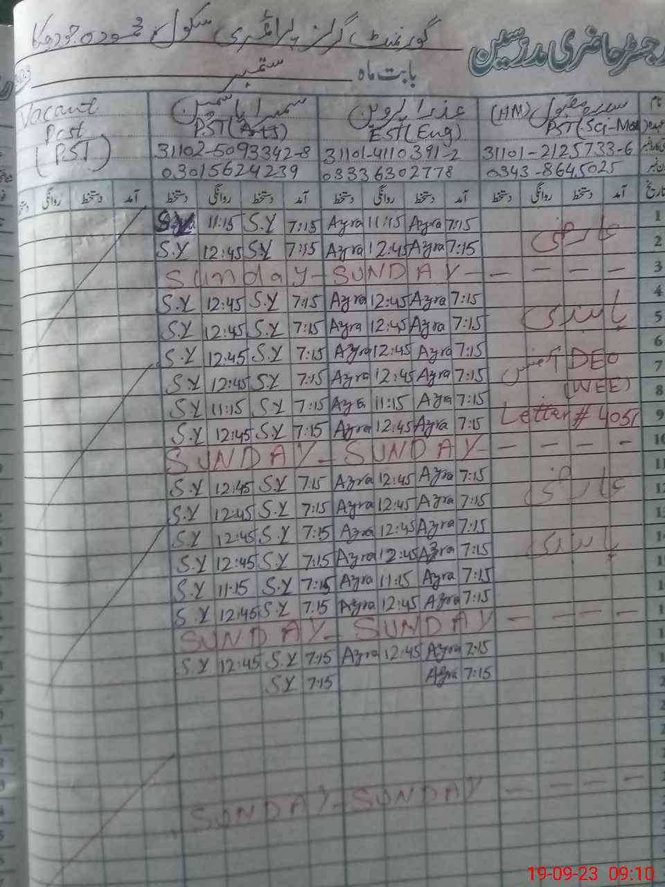| Name: SI**** MA**** Designation: (School Headmaster's/Headmistress's) E SE SC MATH Phone/Cell Number: 03**** |