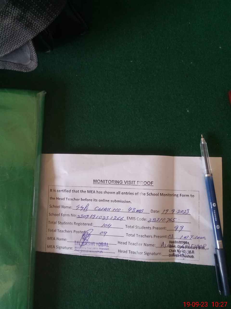 | EMIS Code: 38210765 | Name of School: GGPS CHAK NO 43 MB | |||
