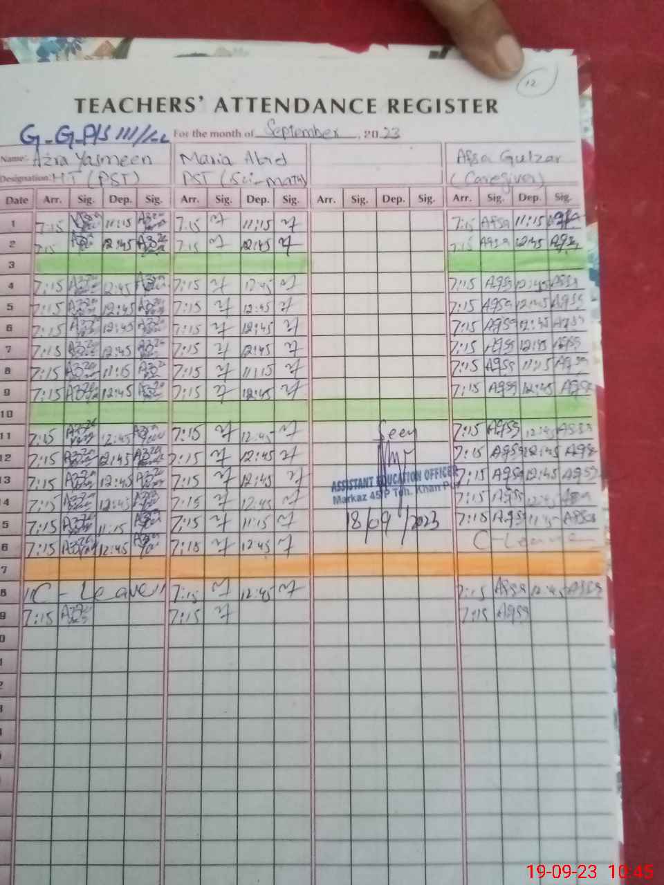 | Name: AZ**** YA**** Designation: (School Headmaster's/Headmistress's) PST Phone/Cell Number: 03**** |