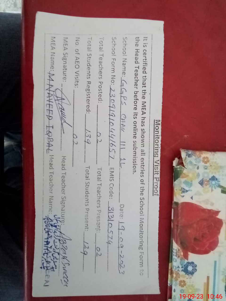 | EMIS Code: 31310574 | Name of School: GGPS CHAK NO.111/1-L | |||