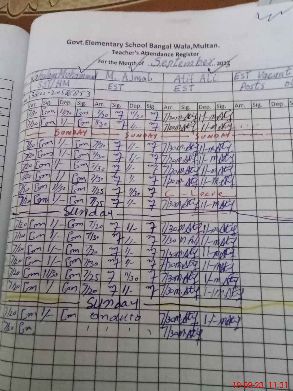 | CNIC | Full Name | Designation | R/C | Absence During Last Calender Month |