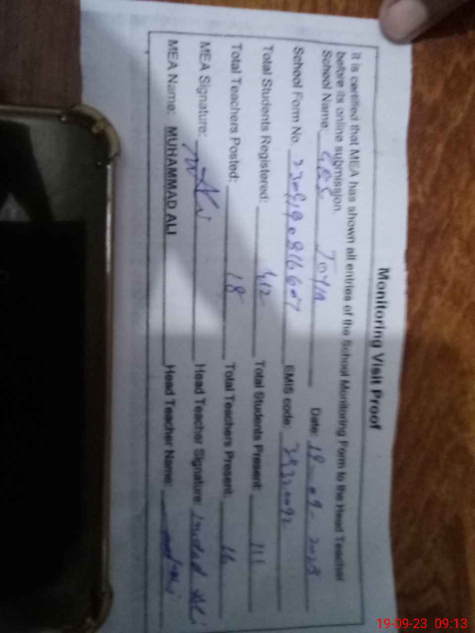 | Name: Im**** Al**** Designation: (School Headmaster's/Headmistress's) SST Phone/Cell Number: 03**** |