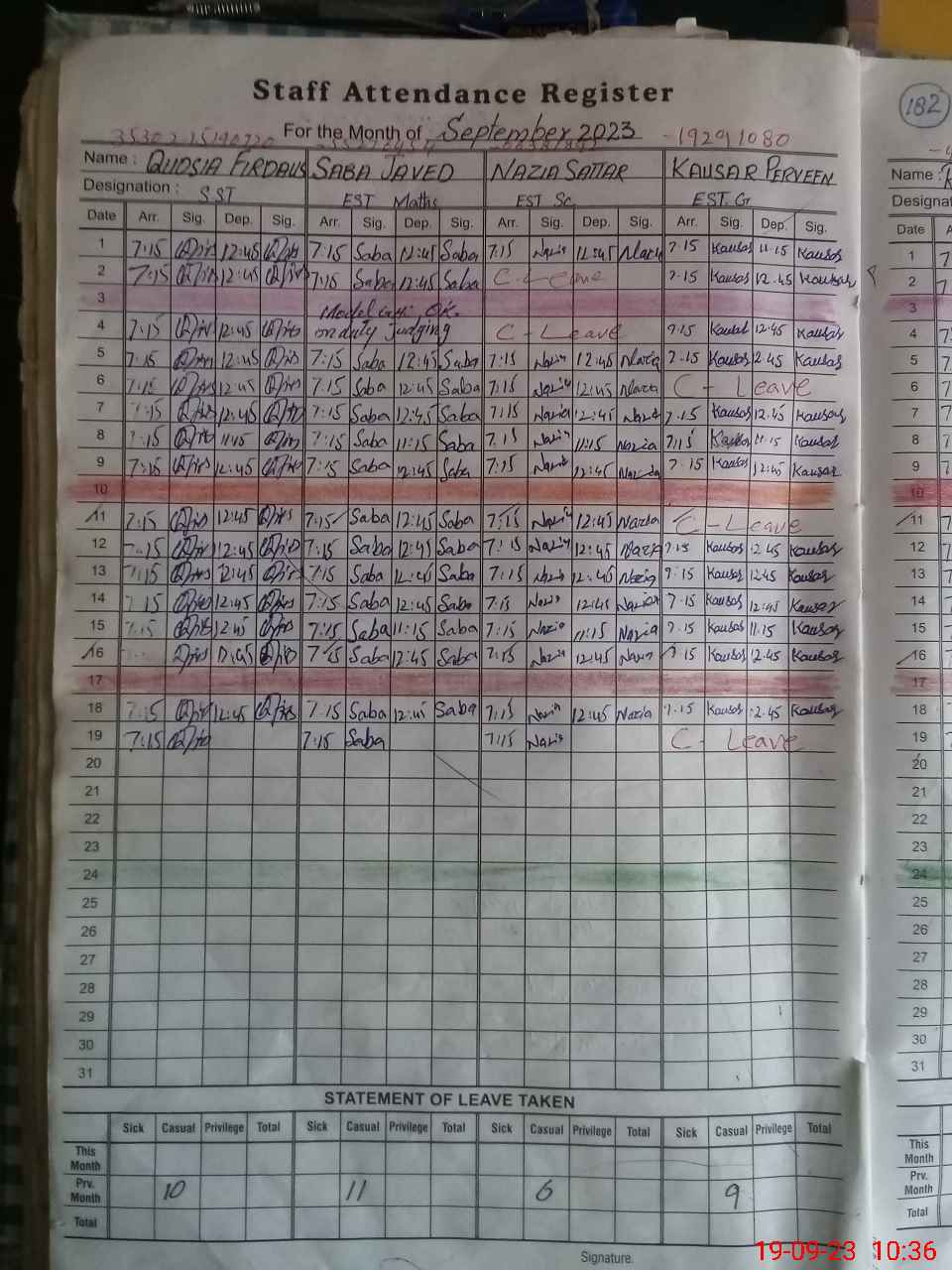 | Leave | Duty | Absent | Maternity | Medical | Ex- Pak |