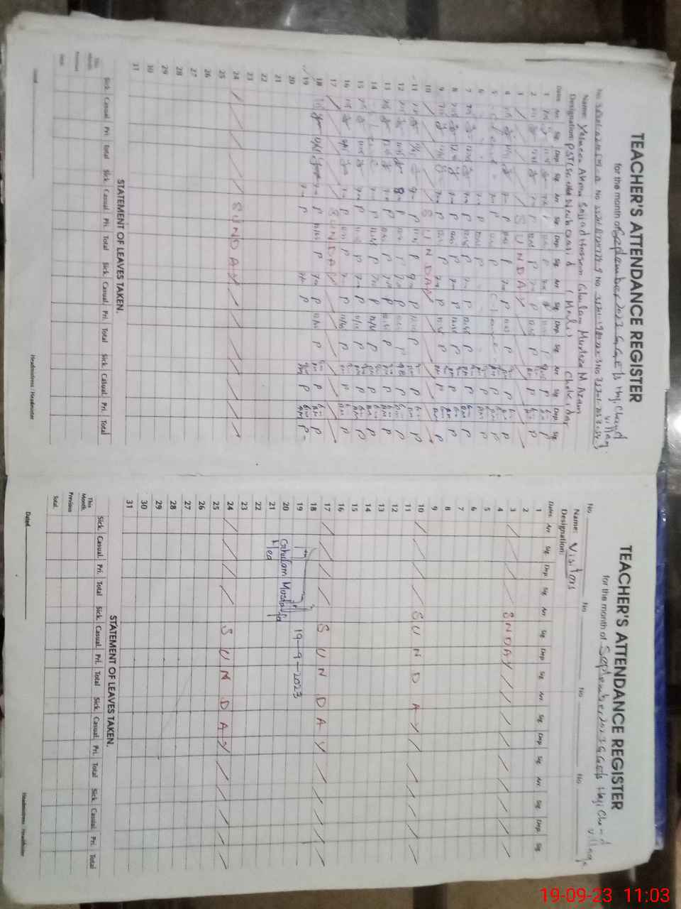 | Name: RA**** BI**** Designation: (School Headmaster's/Headmistress's) EST G Phone/Cell Number: 03**** |