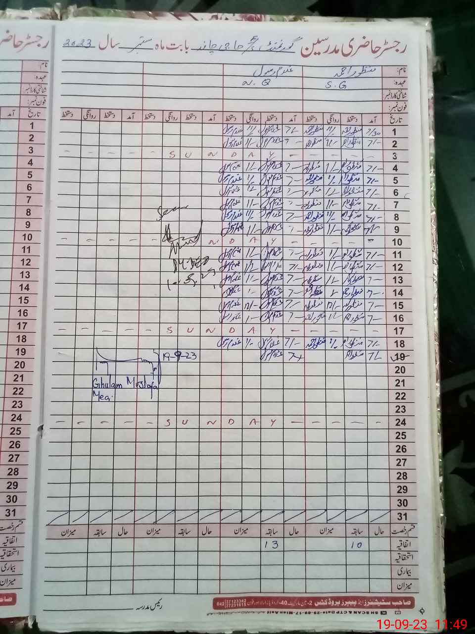 | Name: MSa**** Zi**** Designation: (School Headmaster's/Headmistress's) S S T General Phone/Cell Number: 03**** |