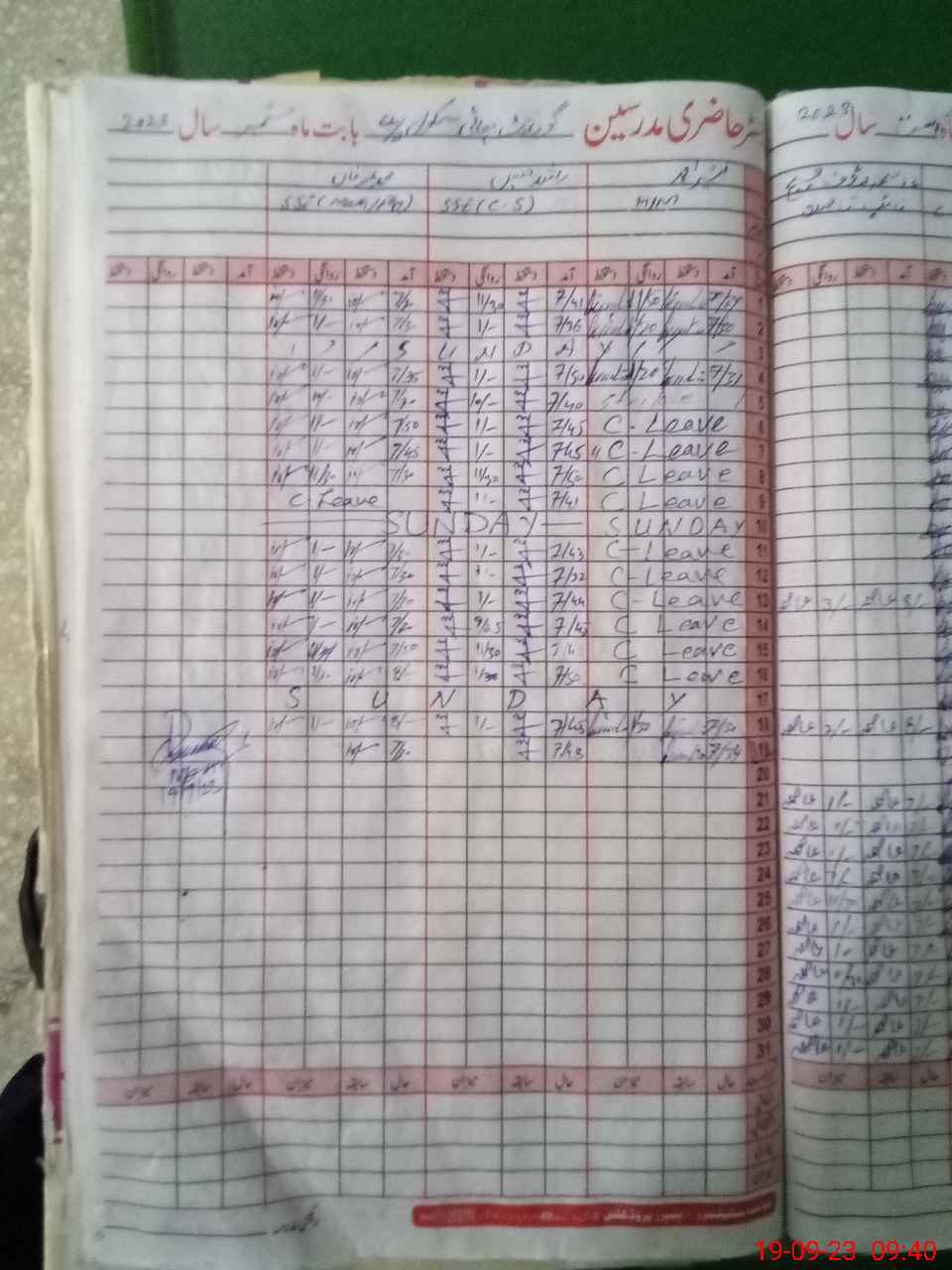 | CNIC | Full Name | Designation | R/C | Absence During Last Calender Month |
