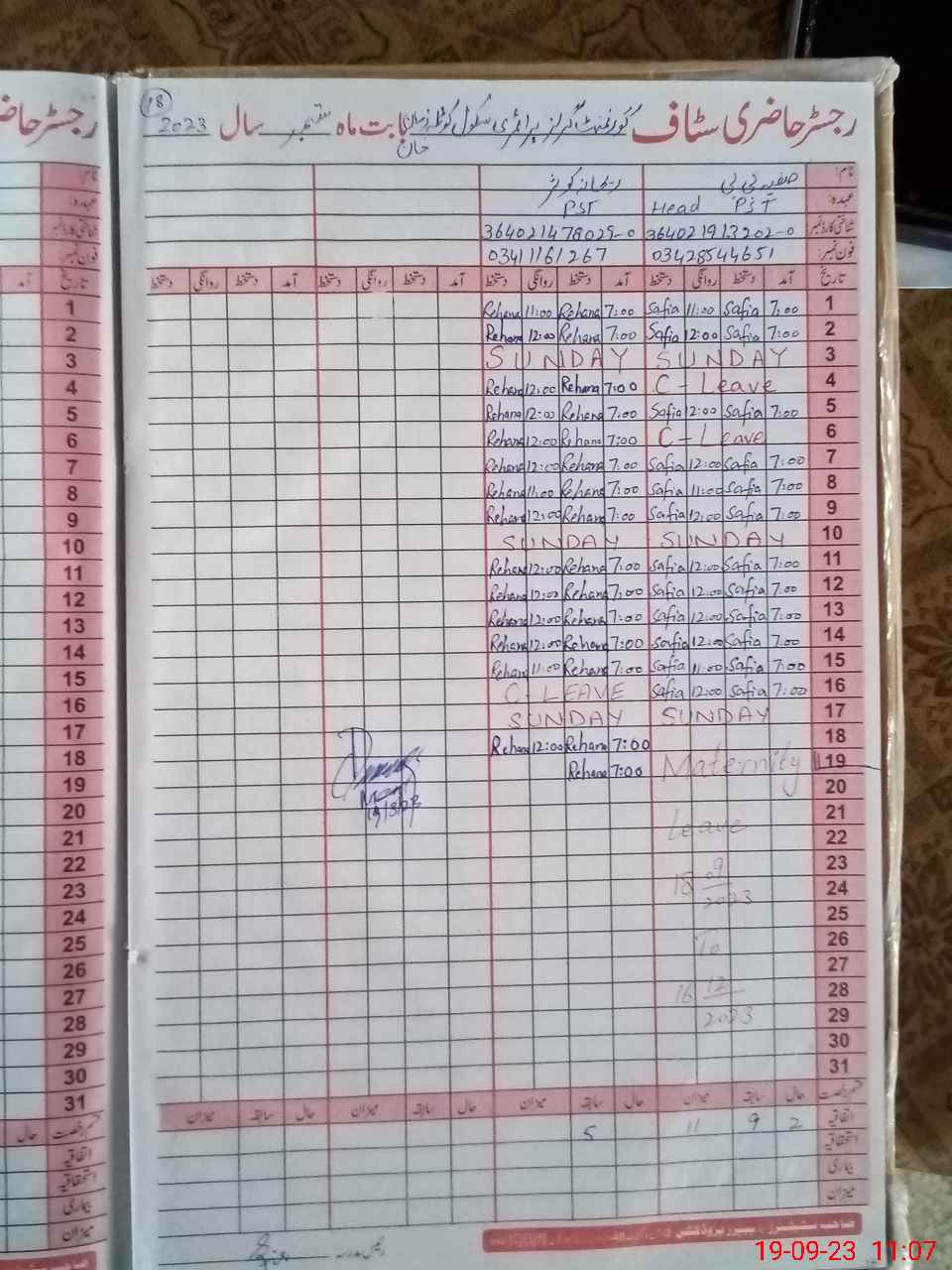 | Name: Sa**** Bi**** Designation: (School Headmaster's/Headmistress's) PST Phone/Cell Number: 03**** |
