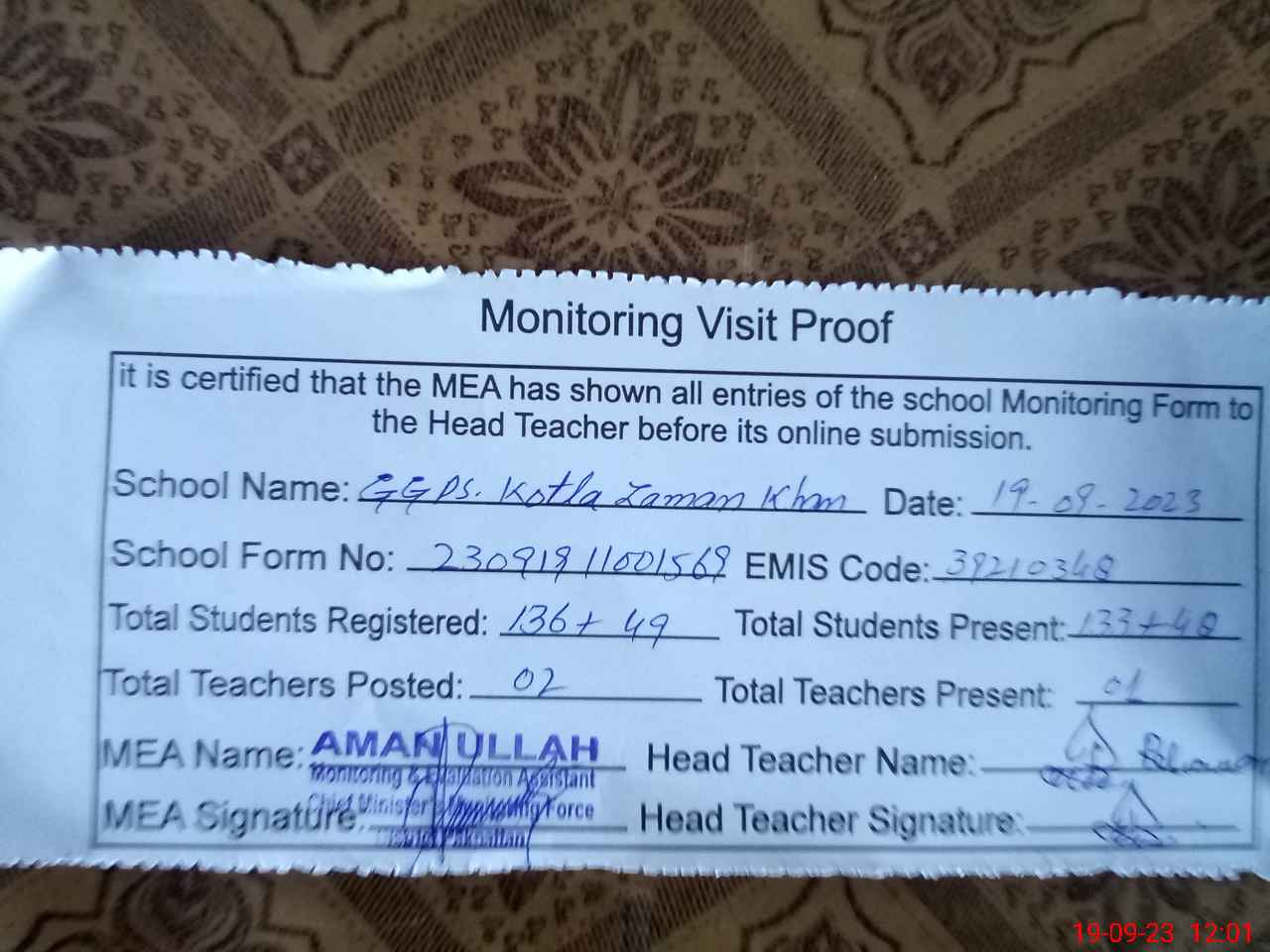 | EMIS Code: 39210348 | Name of School: GGPS KOTLA ZAMAN KHAN | |||