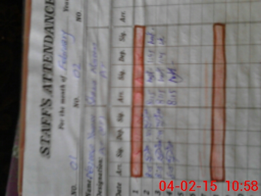 | CNIC | Full Name | Designation | R/C | Absence During Last Calender Month |