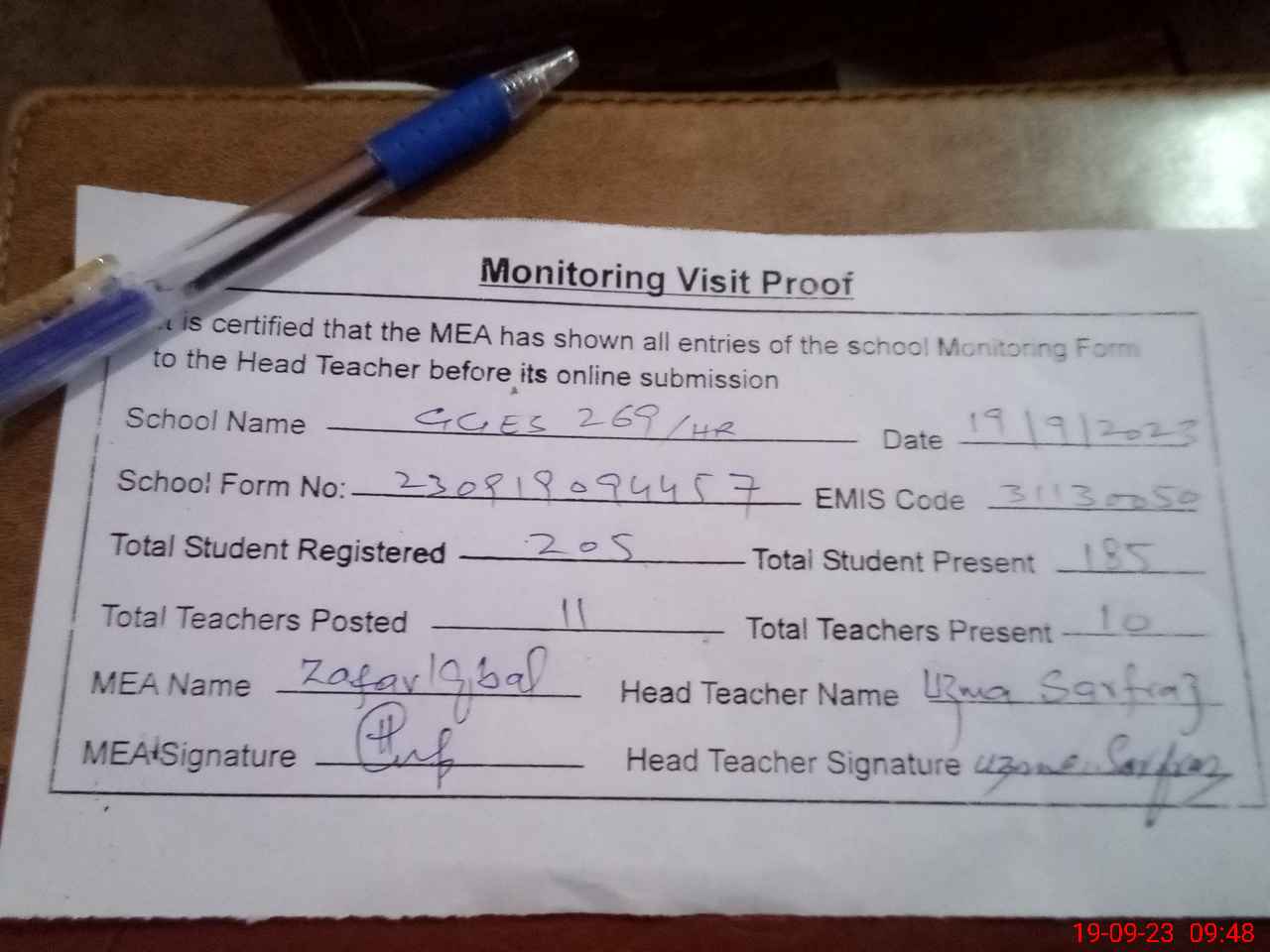 | EMIS Code: 31130050 | Name of School: GGES CHAK 269/HR | |||