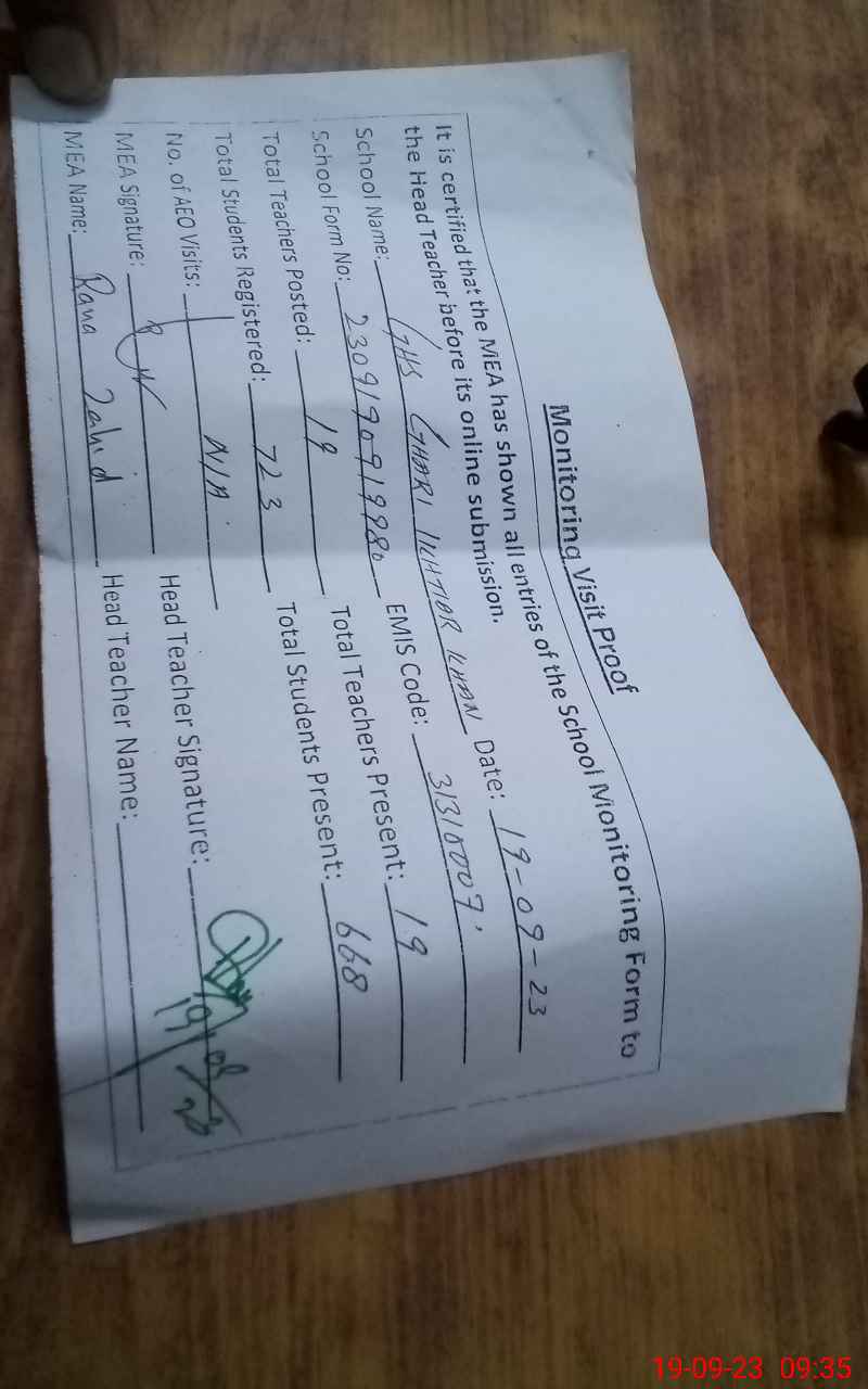 | EMIS Code: 31310007 | Name of School: GHS GARHI IKHTIAR KHAN | |||