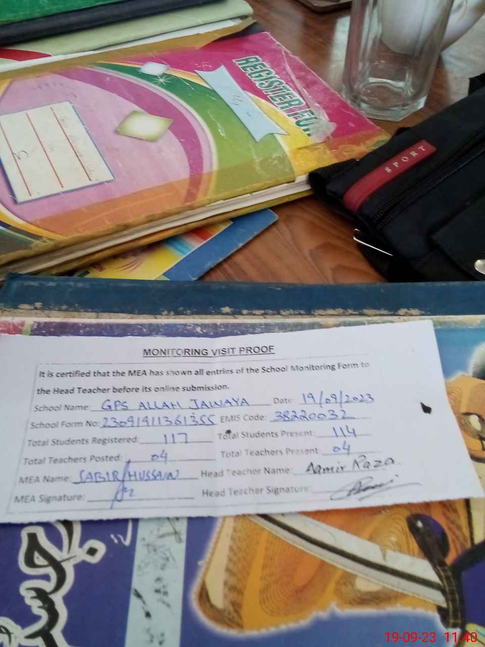 | EMIS Code: 38220032 | Name of School: GPS ALLAH JAWAYA WALA | |||