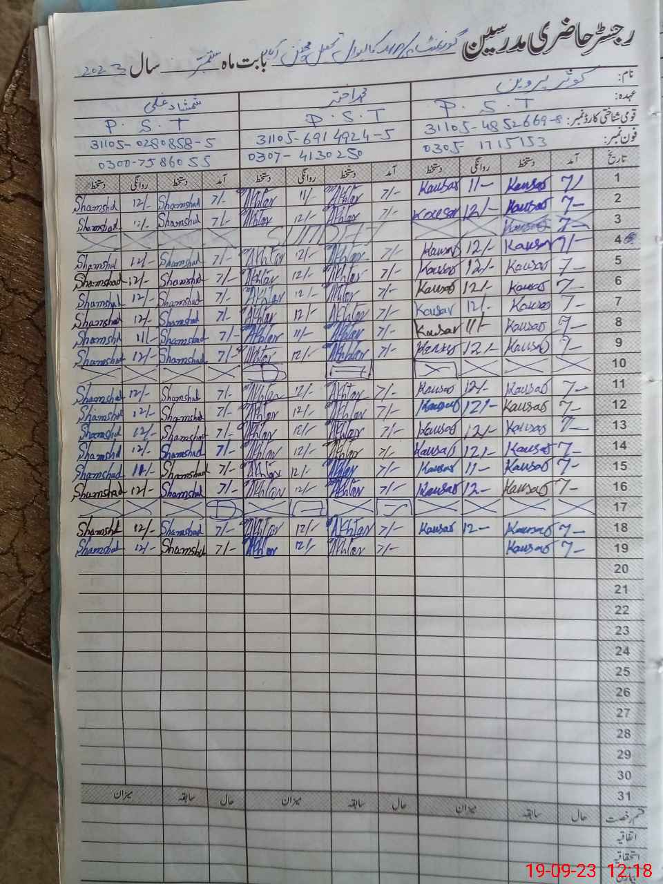| Name: SA**** IQ**** Designation: (School Headmaster's/Headmistress's) PST Phone/Cell Number: 03**** |