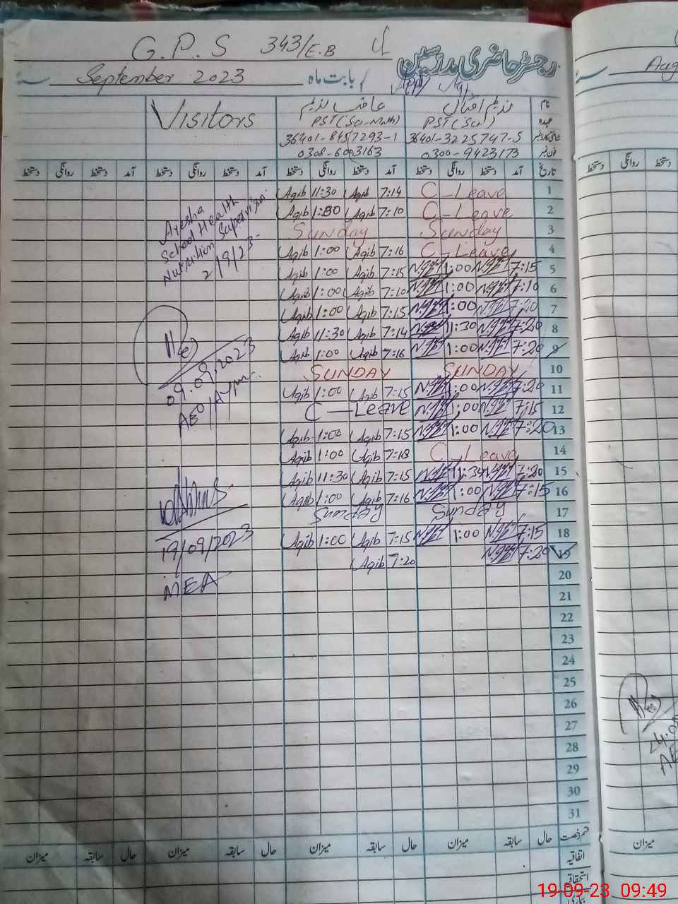 | Name: AA**** NA**** Designation: (School Headmaster's/Headmistress's) PST Phone/Cell Number: 03**** |