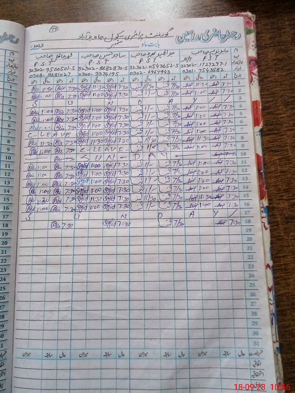 | CNIC | Full Name | Designation | R/C | Absence During Last Calender Month |