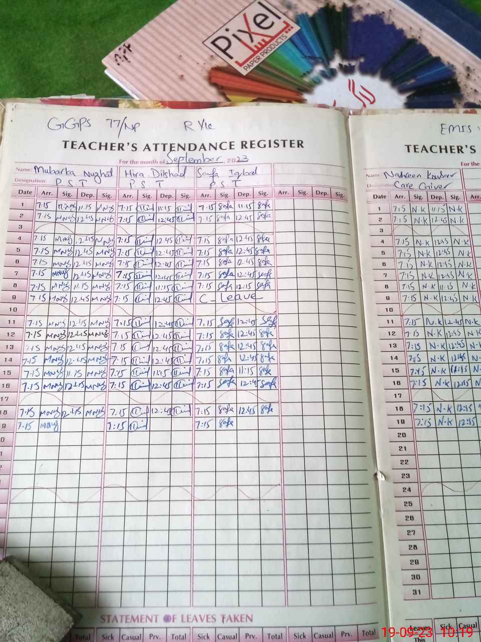 | Leave | Duty | Absent | Maternity | Medical | Ex- Pak |