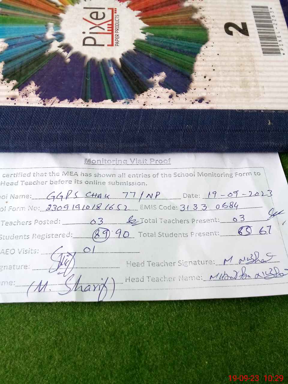 | Attendance Register | Head Teacher | MEA with School | Visit Proof |