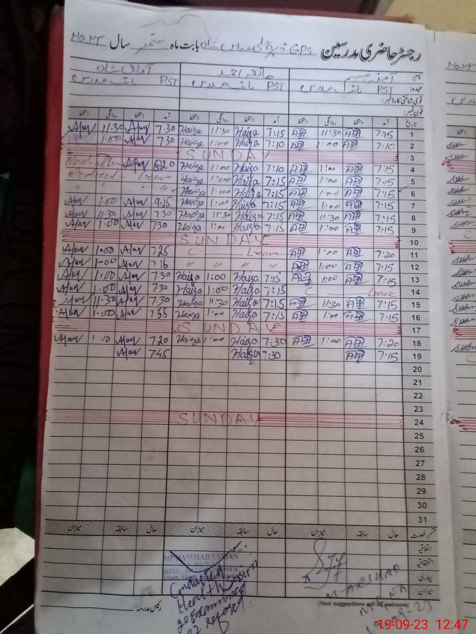 | Name: SA**** HU**** Designation: (School Headmaster's/Headmistress's) PST Phone/Cell Number: 03**** |