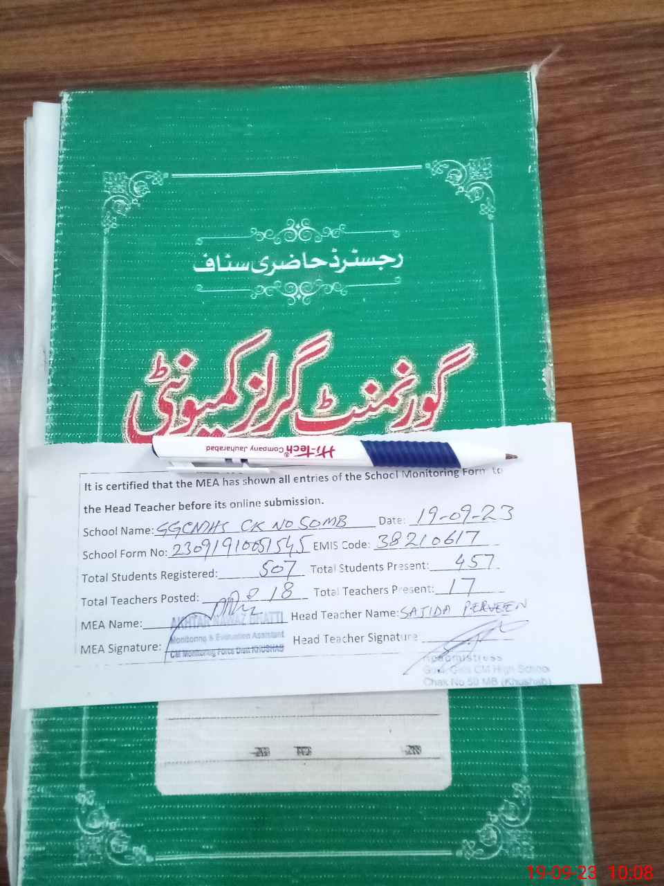 | EMIS Code: 38210617 | Name of School: GGCMHS CHAK 50 MB | |||