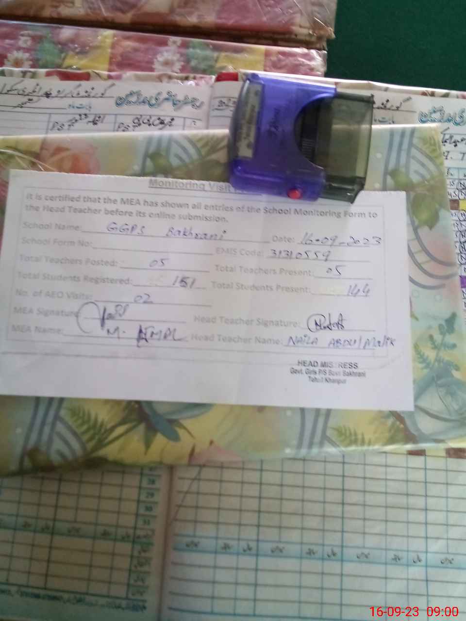 | Certified that this School was Inspected by the Undersigned MEA/DMO Today and the Information Stated Above is as Per Record. | |||||