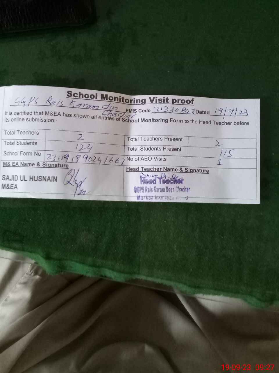 | EMIS Code: 31330843 | Name of School: GGPS RAEES KARAM DIN CHACHAR | |||