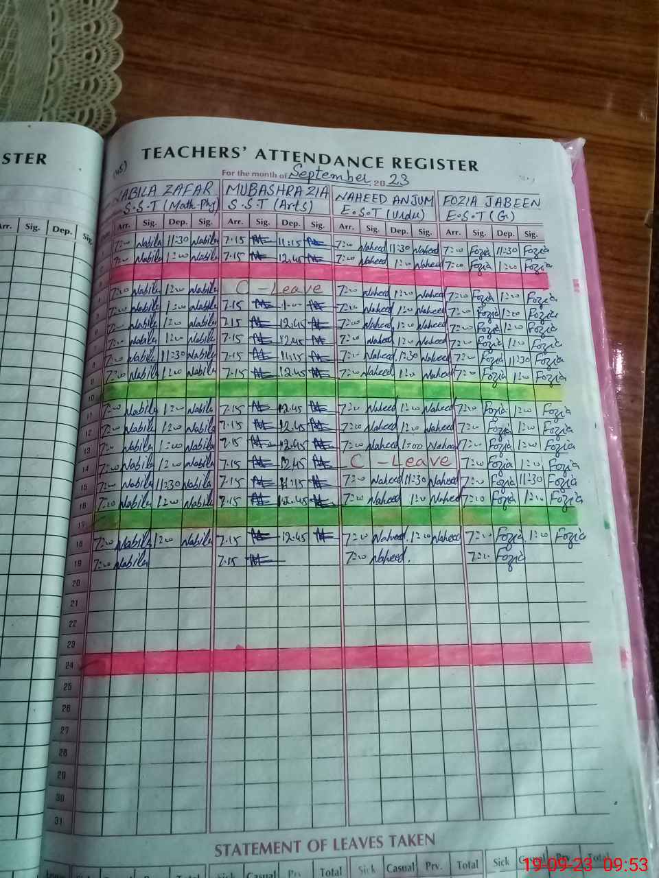 | Leave | Duty | Absent | Maternity | Medical | Ex- Pak |