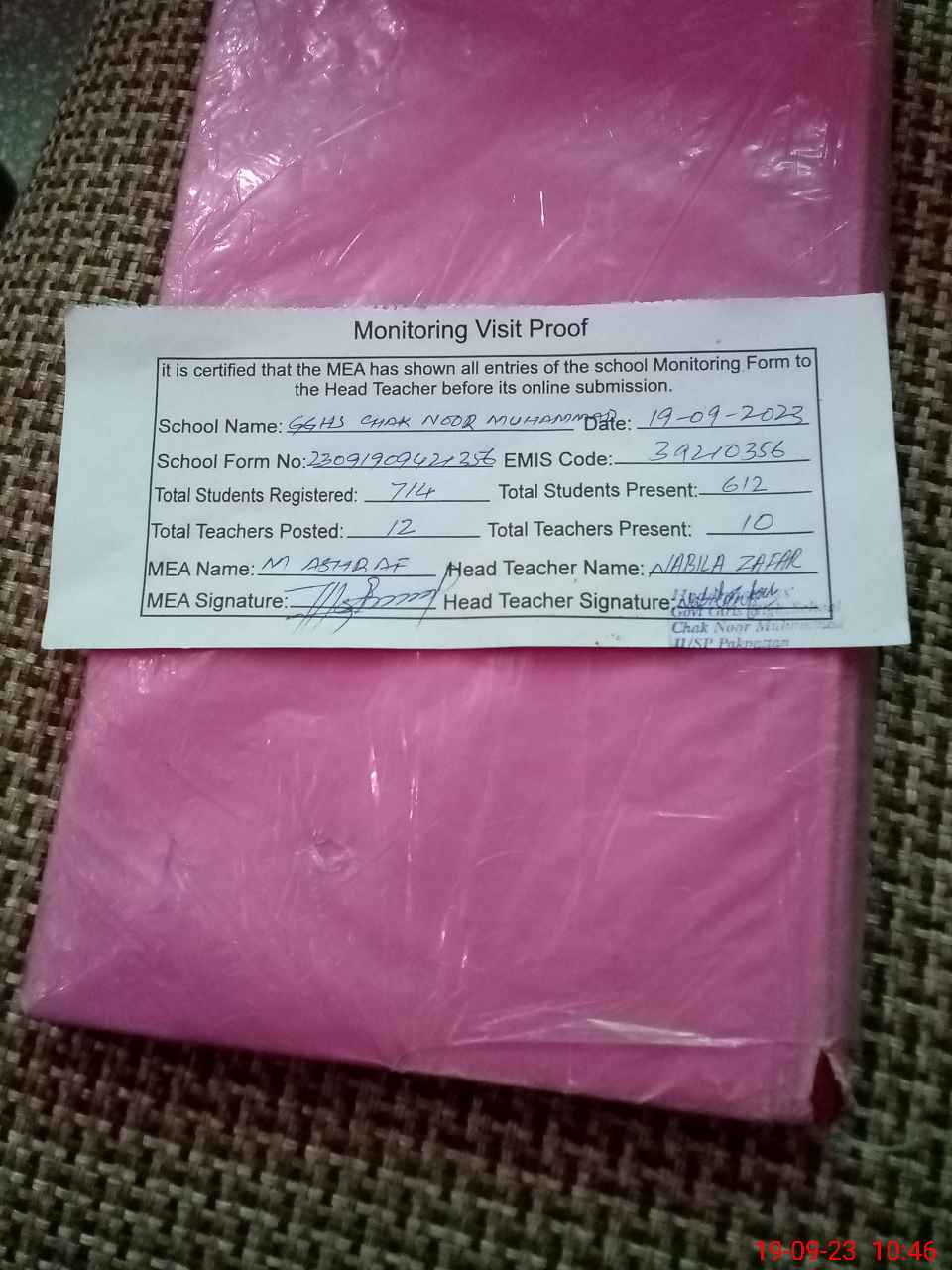 | EMIS Code: 39210356 | Name of School: GGHS CHAK NOOR MUHAMMAD 11/SP | |||