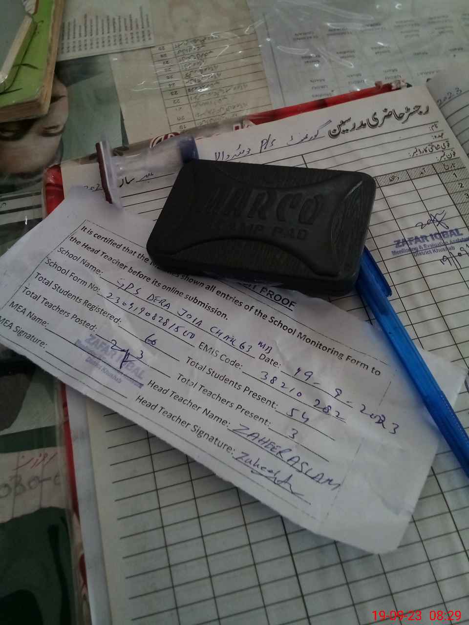 | Attendance Register | Head Teacher | MEA with School | Visit Proof |
