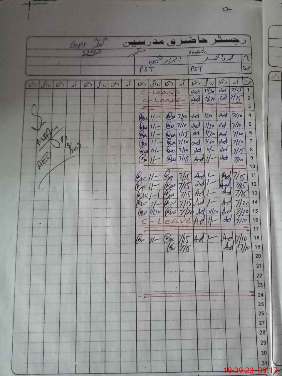 | Name: Mu**** Ah**** Designation: (School Headmaster's/Headmistress's) PST Phone/Cell Number: 03**** |