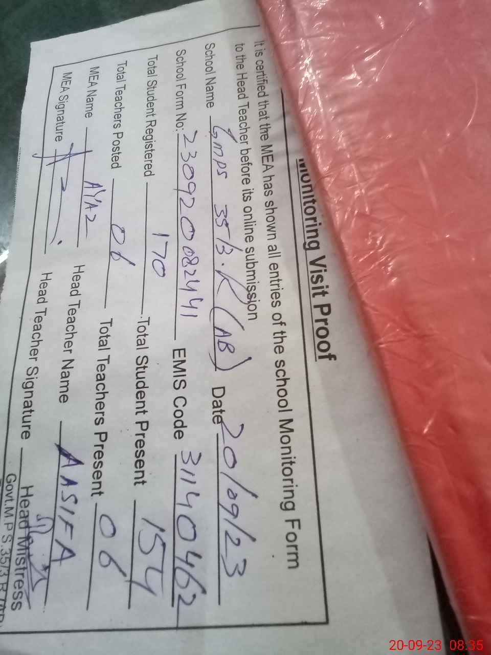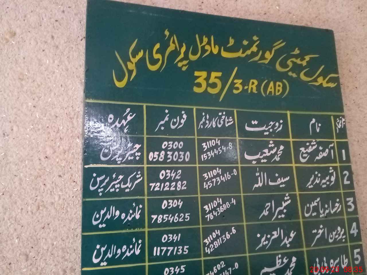 | EMIS Code: 31140462 | Name of School: GMPS CHAK NO 35/3-R AB | |||