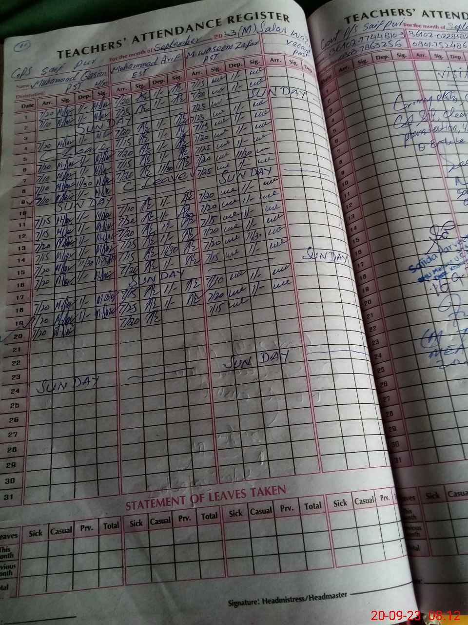 | Name: Mo**** Wa**** Za**** Designation: (School Headmaster's/Headmistress's) PTC/JV Phone/Cell Number: 03**** |