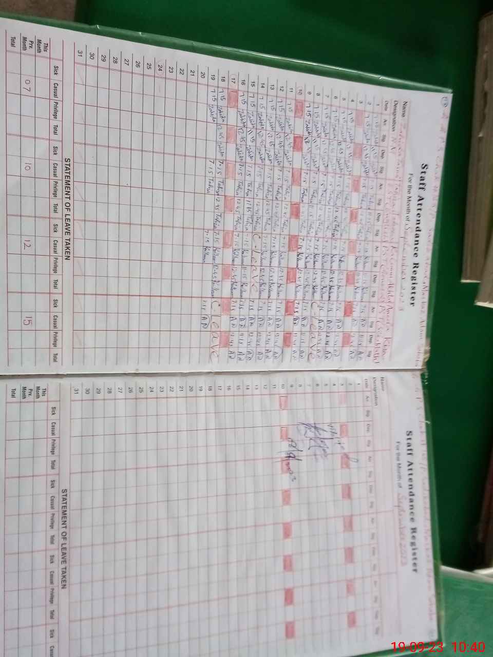 | No. of Students Present - Female | 12 | 0 | 23 | 17 | 14 | 10 | 9 | 12 | 97 | |||||||