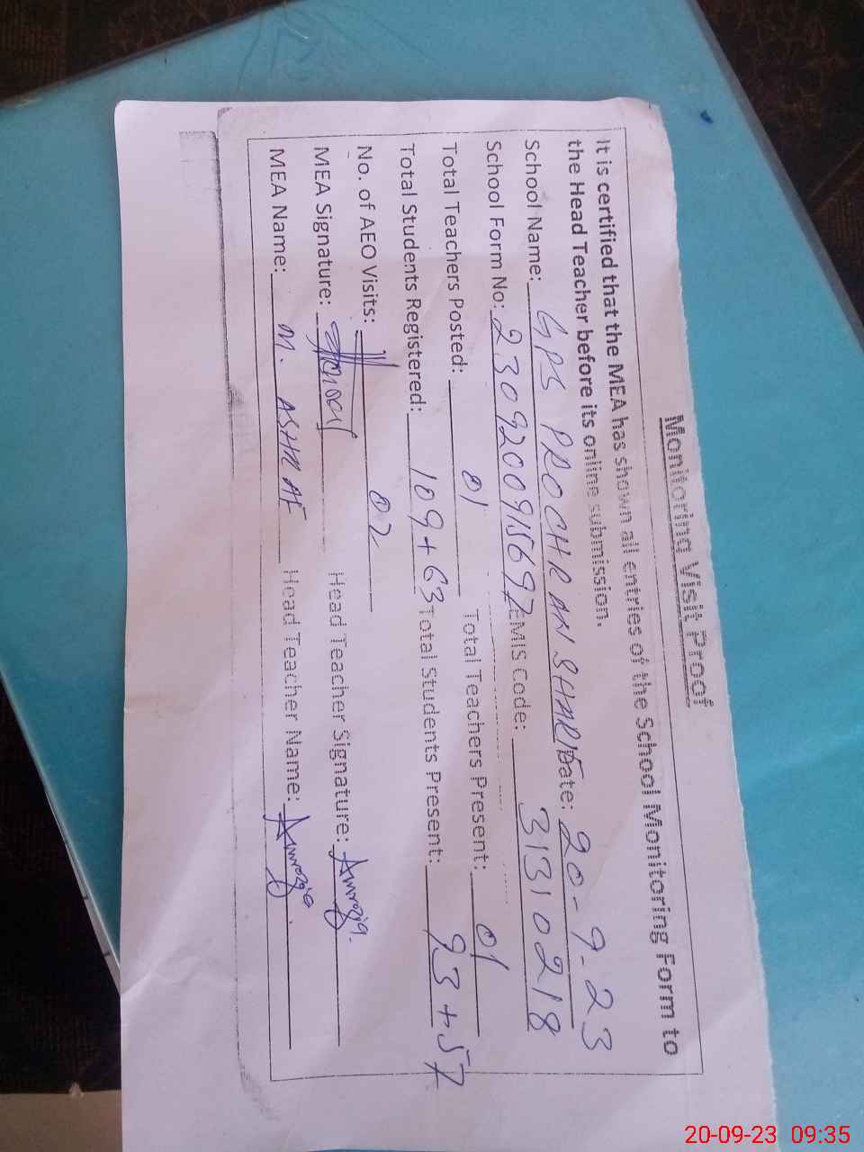 | EMIS Code: 31310218 | Name of School: GPS PROCHRAN (After Noon) | |||
