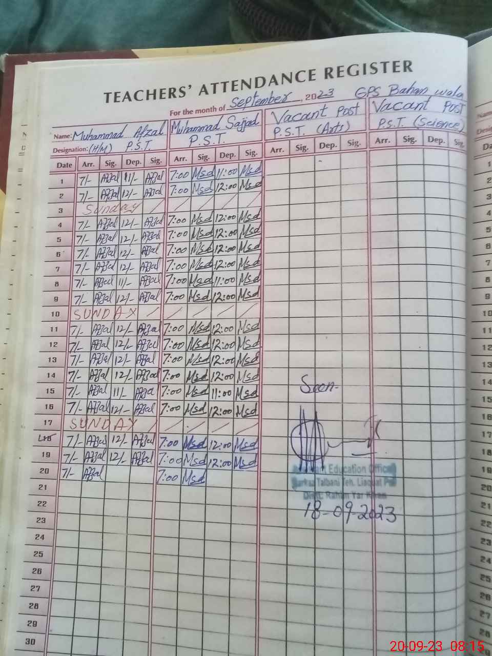 | Name: M.AF**** Designation: (School Headmaster's/Headmistress's) PST/PTC/JV Phone/Cell Number: 03**** |